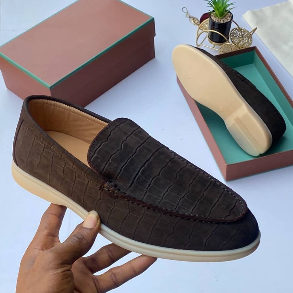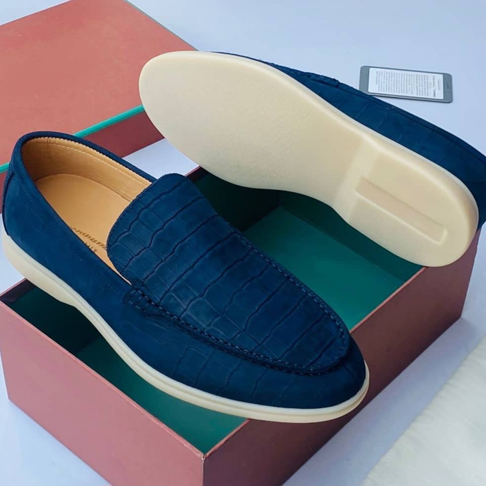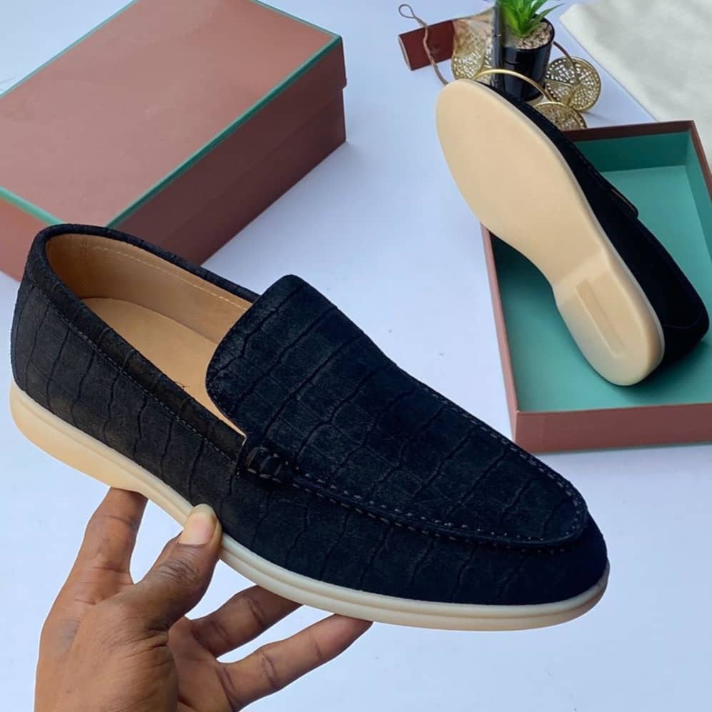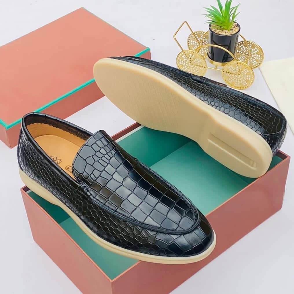 Refined Loro Piana loafers crafted with a croc-embossed leather finish, delivering a bold yet elegant look that enhances both formal and smart-casual outfits with effortless sophistication.