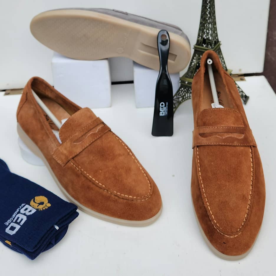 A refined suede penny loafer crafted for modern comfort and timeless style, suitable for both smart and casual wear.